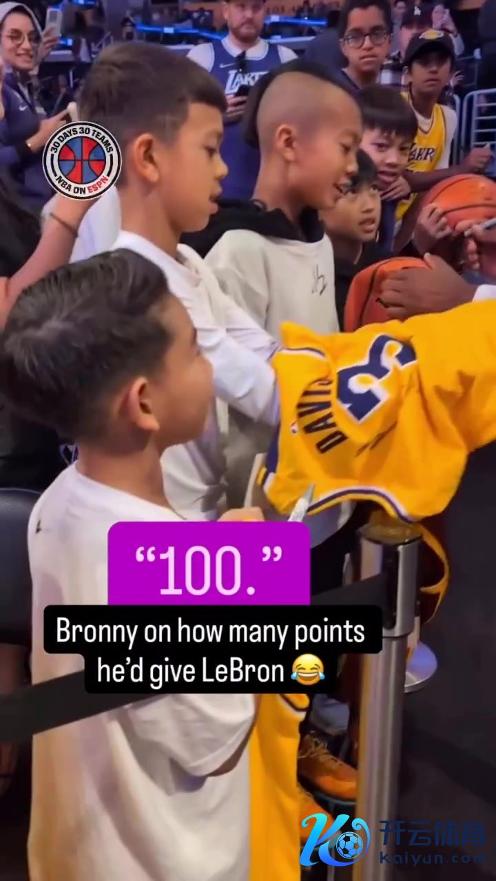 有爱互动!小球迷:你会给勒布朗-詹姆斯打些许分?布朗尼:100!体育集锦