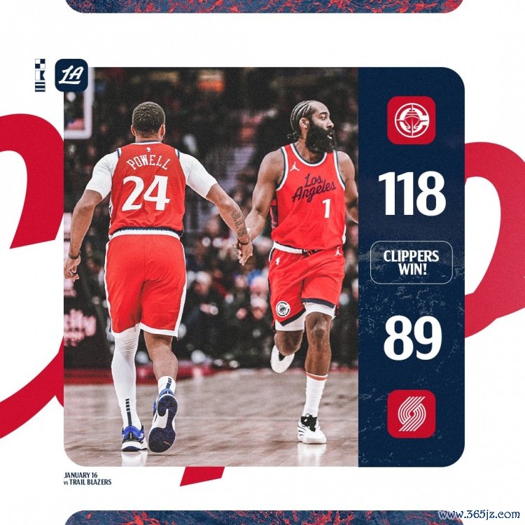 赛后快船官方赢球海报封面东谈主物给到了哈登和鲍威尔。
