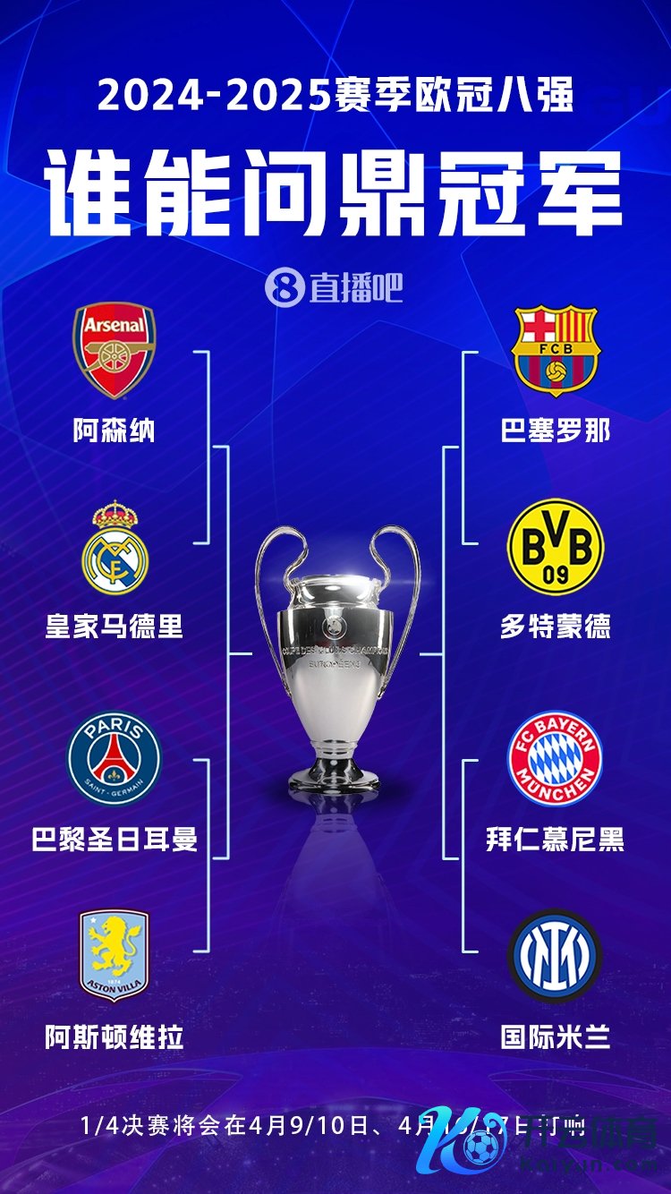 本赛季欧冠8强的上半区4队一共夺得过16次欧冠,其中皇马15次,维拉1次。下半区4队则一谈王人拿过欧冠,一共15次,其中巴萨5次体育集锦,多特1次,拜仁6次,国米3次。