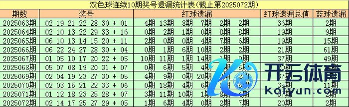完了双色球第2025072期,最近10期红球遗漏总值辩认为:36期、19期、19期、21期、37期、20期、37期、35期、37期、20期,上期遗漏总期数相对较低。
