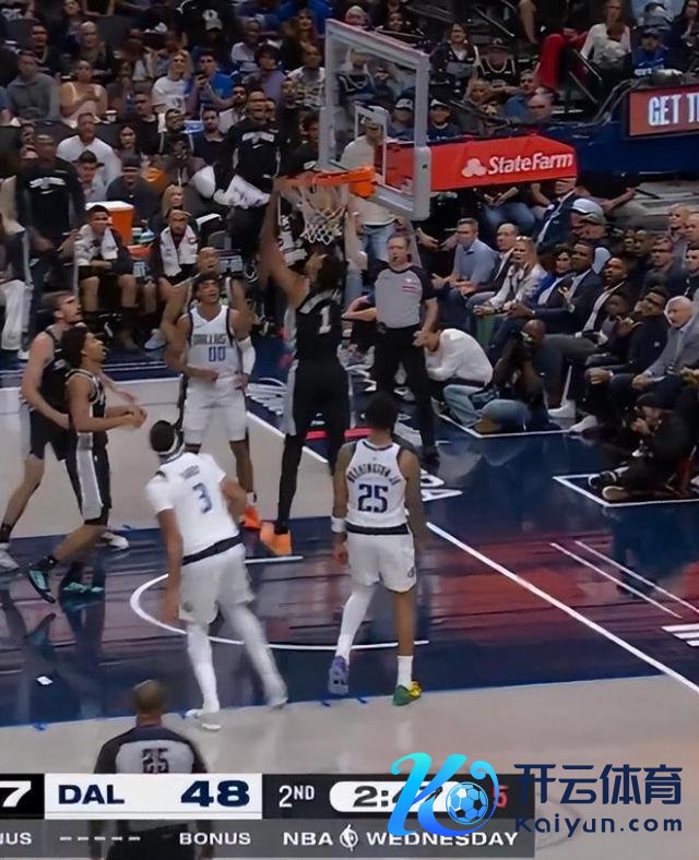 文班亚马确凿是太猛了,一步过掉华盛顿后径直拉杆抡臂大风车反扣,这是一个 7 尺 4 寸的大个子球员能作念出来的算作吗?一个 2.24 米(7 尺 4)的内线一步过一个 2.01 米的锋线,这是什么体魄天禀?弗拉格只可独力难支。