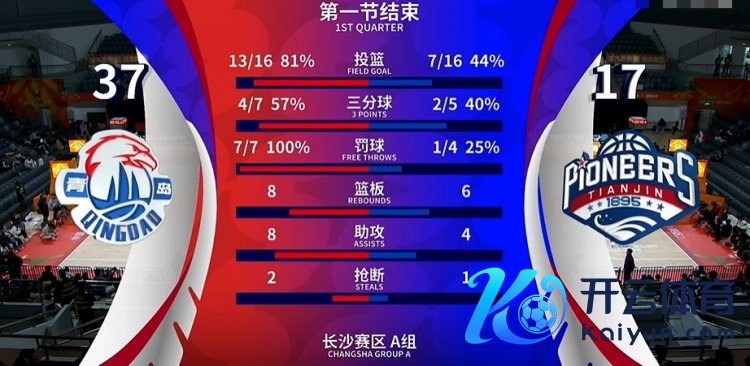 12月7日讯 CBA俱乐部杯长沙赛区小组赛,青岛首节37-17普及天津。