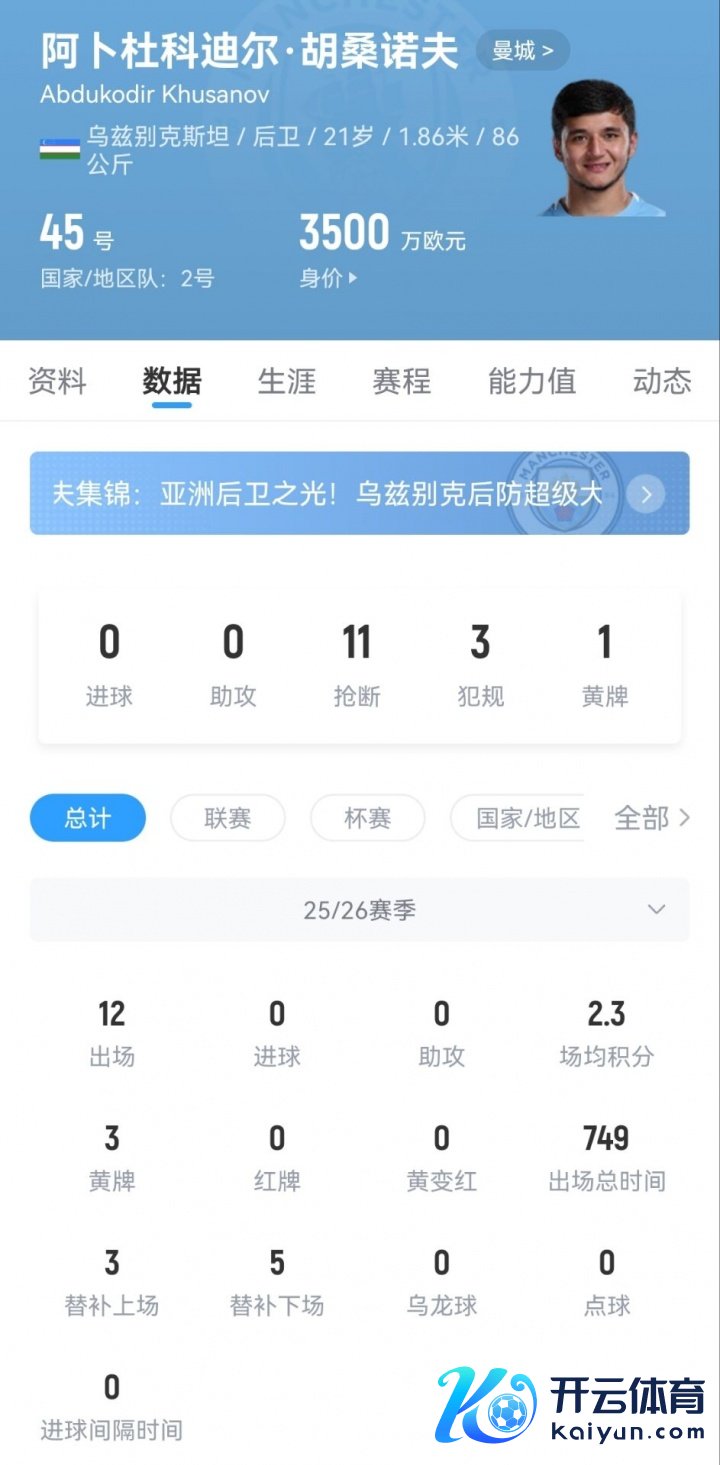 本赛季初胡桑诺夫一度也拿到了首发的位置,但之后他遇到脚踝伤病,规复后瓜帅又将他放上了替补席。不外由于当今鲁本·迪亚斯、格瓦迪奥尔和斯通斯的伤病,胡桑诺夫需要扛起曼城后防的大旗。