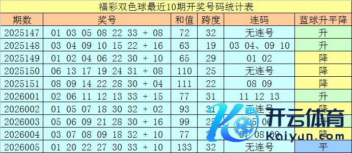 上期开奖:福彩双色球第2026005奖号开出:01 20 22 27 30 33 + 10,红球号码和值为133,首尾间距为32,无连号。