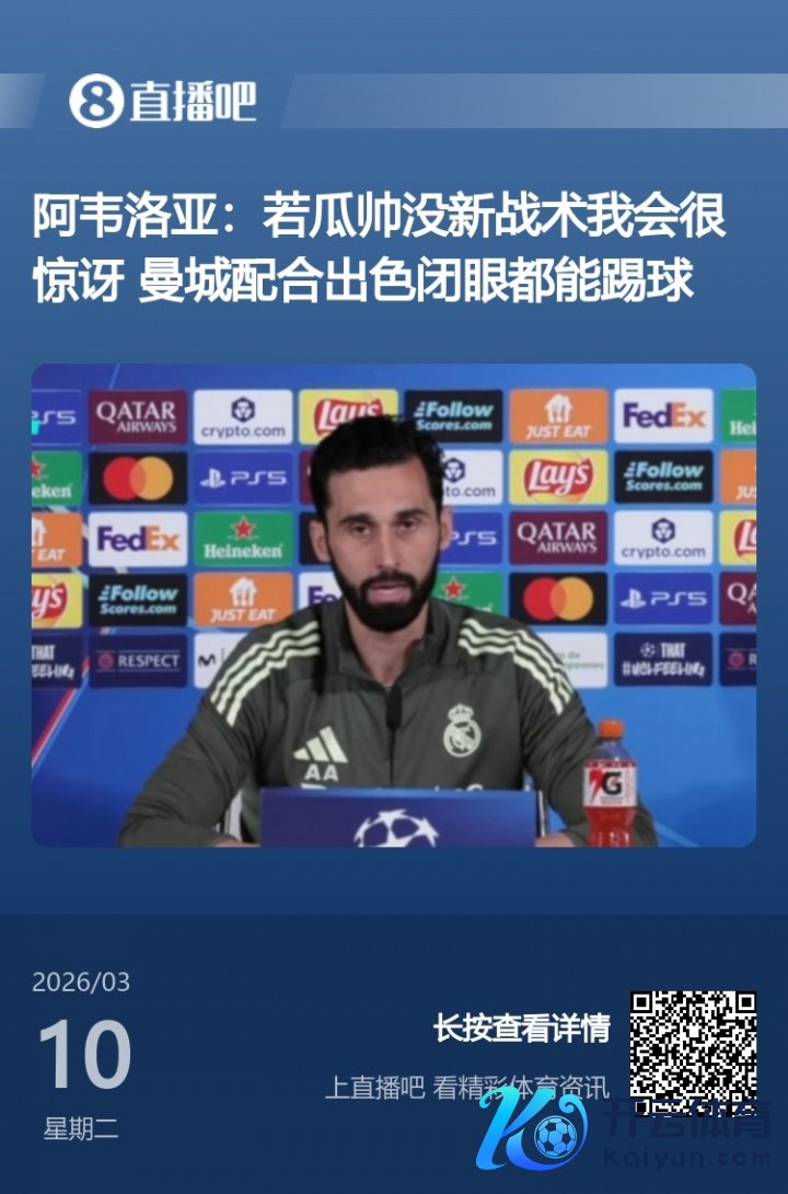 03月12日讯 凌晨欧冠1/8决赛首回合,皇马主场3-0大捷曼城。赛前发布会上阿韦洛亚默示若是瓜迪奥拉莫得新计策或新东说念主,他会很讶异,成果本场比赛曼城更换了边后卫,首发萨维尼奥、谢尔基替补。