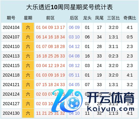 大乐透近十周同星期奖号统计表