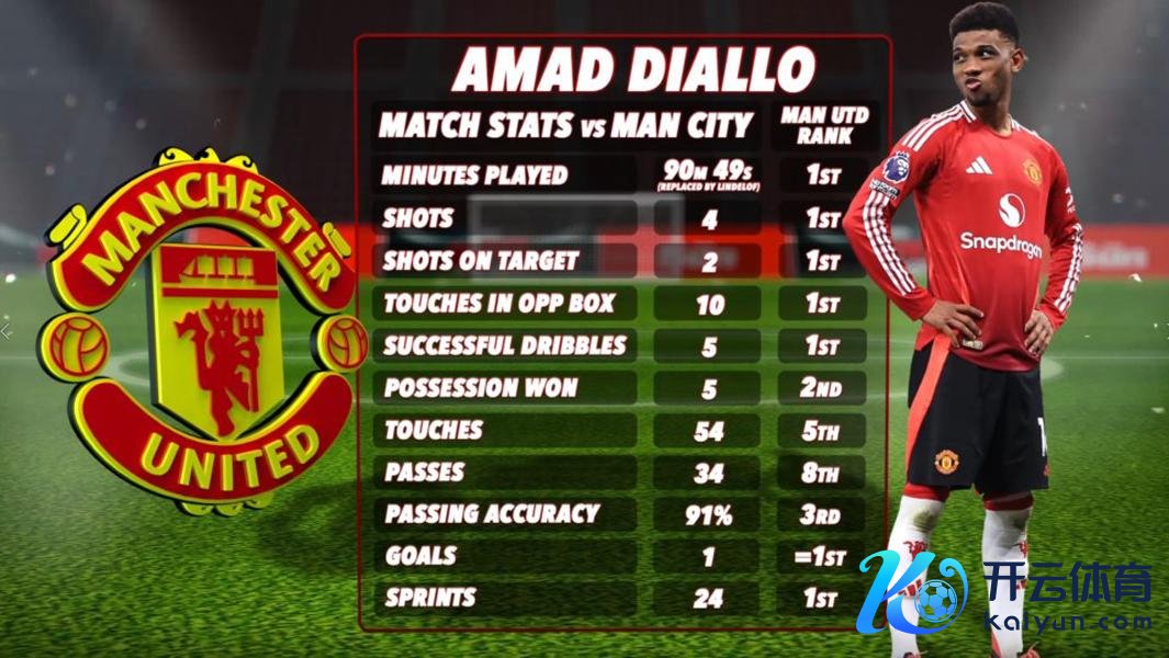 鲁本·阿莫林周日经历了行为曼联主讲授最光辉的一天,球队演出了一场令东谈主咋舌的逆转,以2-1打败了同城邻居曼城。但这要归功于22岁的科特迪瓦边锋阿马德·,他终场前博取点球让布鲁诺·费尔南德斯扳平,随后我方完成绝杀入球。
