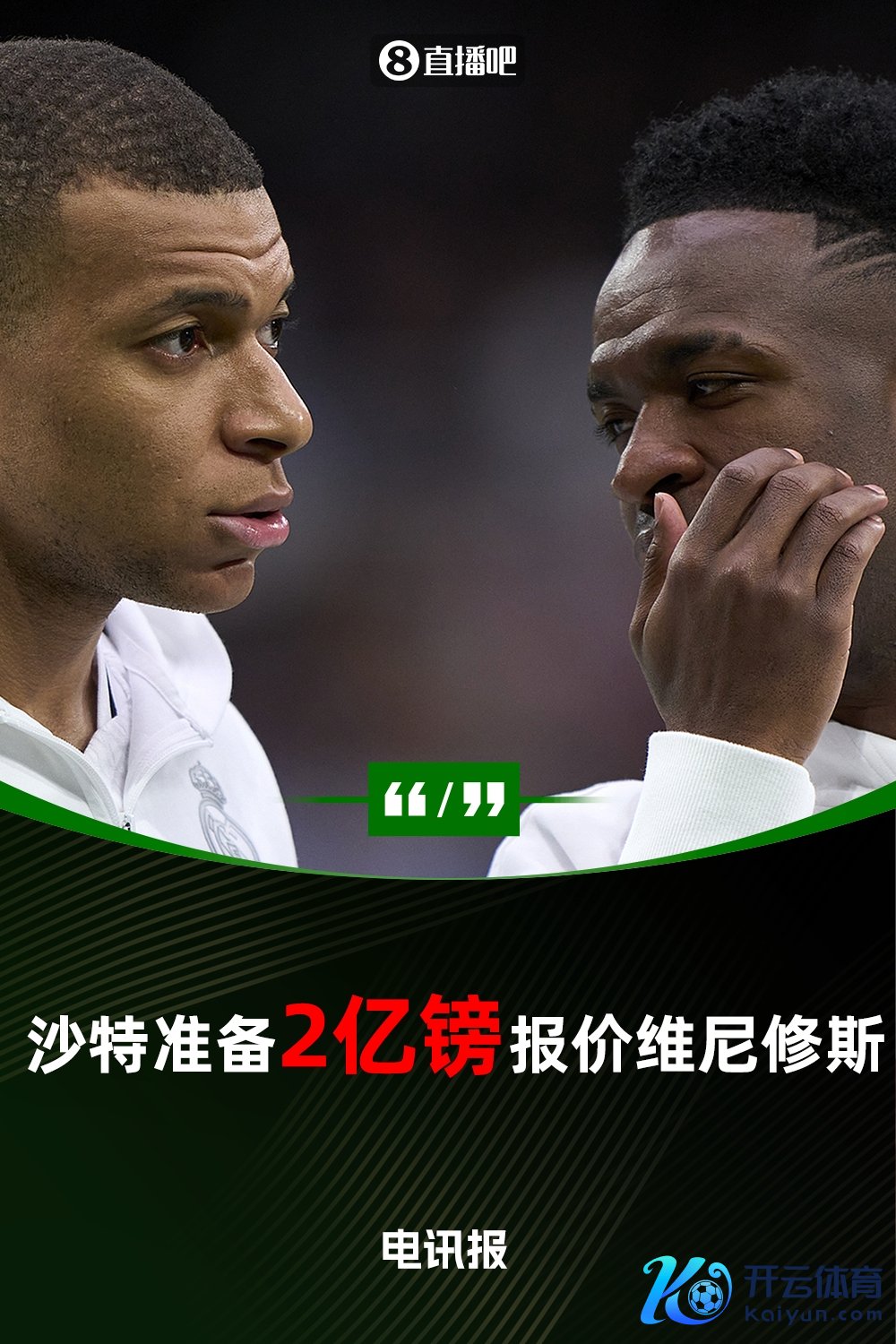 02月26日讯 据《逐日电讯报》报谈,沙特方面准备以2亿镑(约2.41亿欧)的转会报价引进维尼修斯。