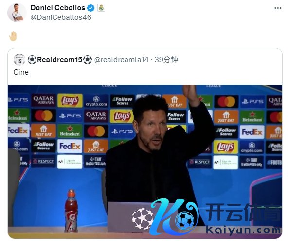 塞巴略斯转发西蒙尼发布会视频体育录像/图片,并附上emoji“🤚🏼”。