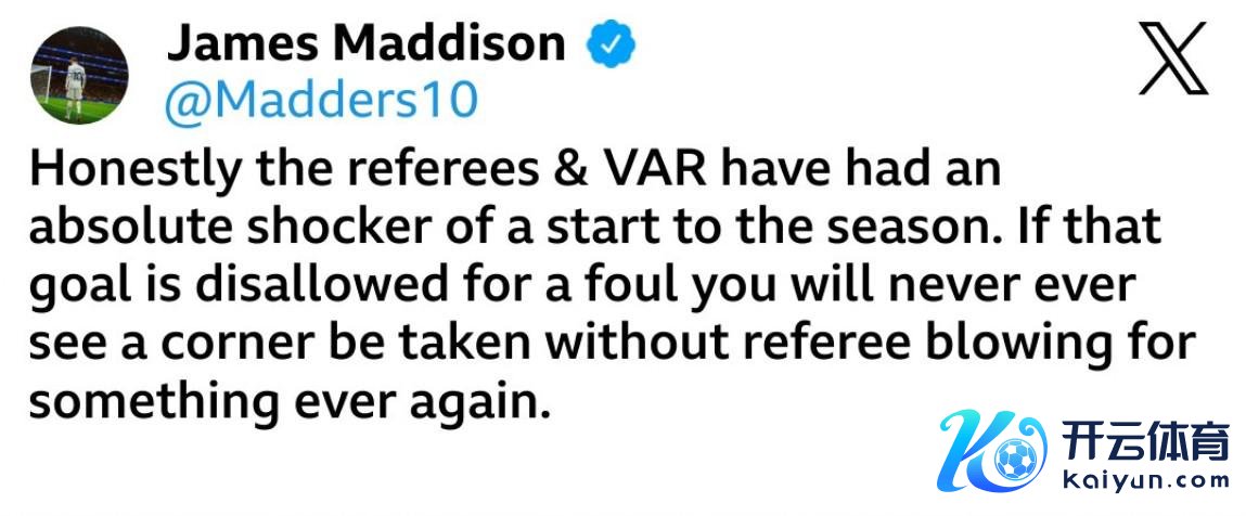 针对这一判罚,麦迪逊暗示:“说真话,裁判和VAR在本赛季的开局发达弥散倒霉透彻。”