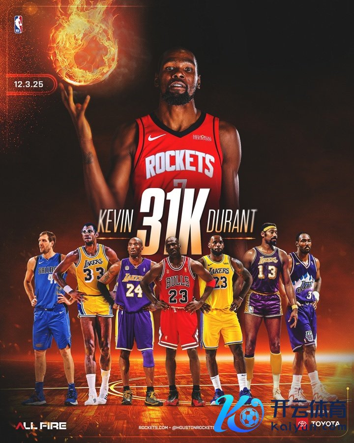 杜兰特获取本场第4分,个东说念主生存得分破裂31000分大关,成为NBA历史上第8位得分破31000的球员!