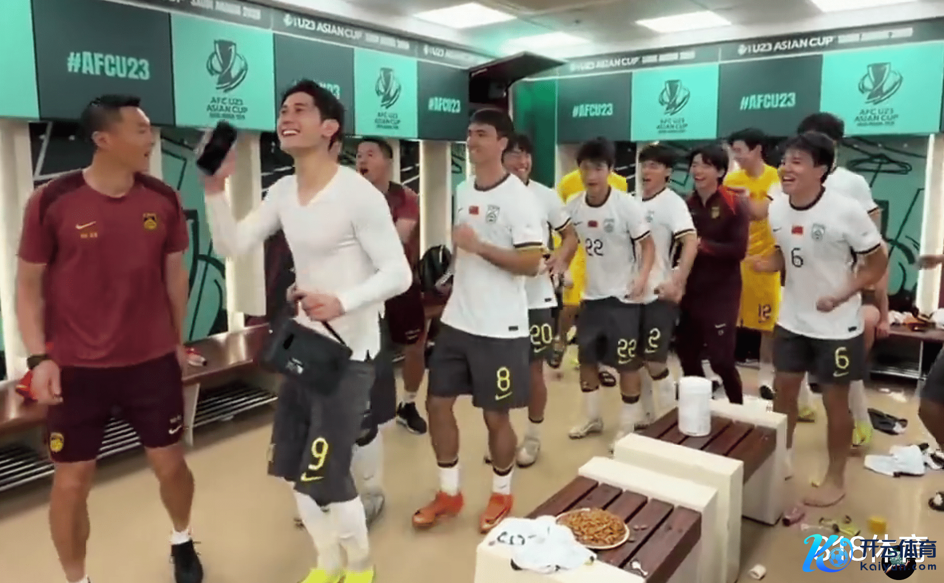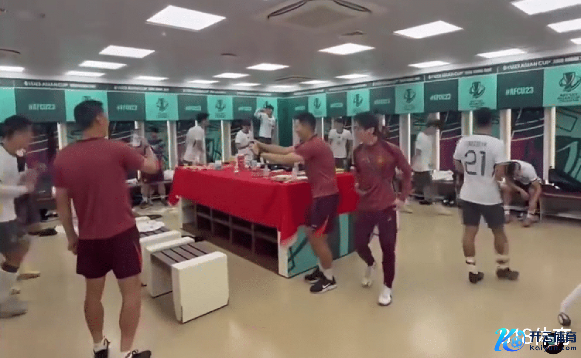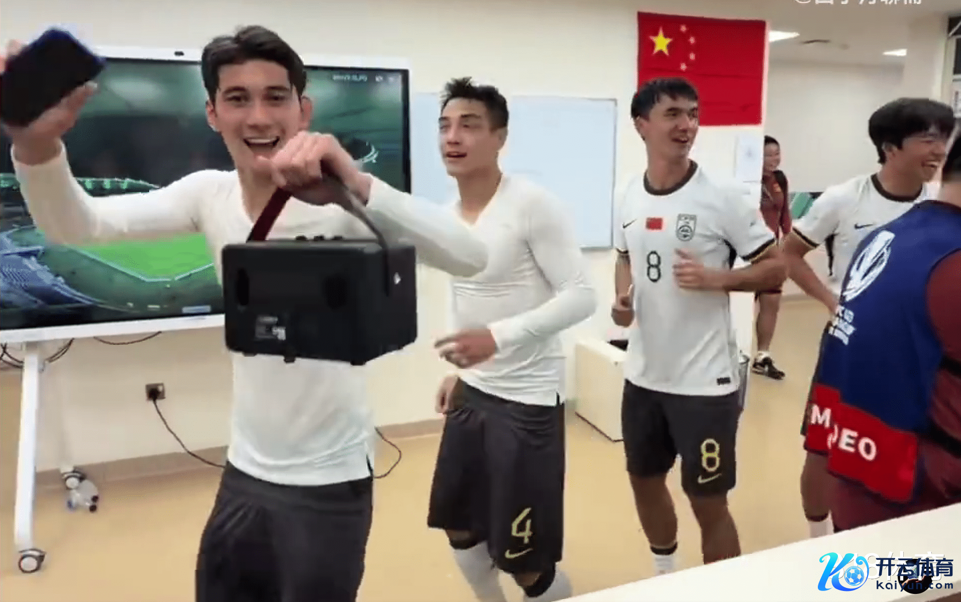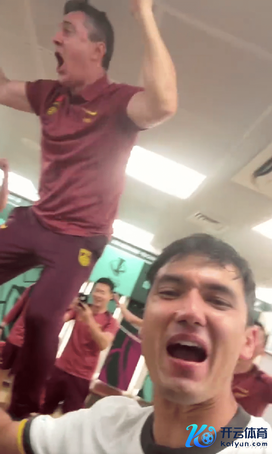 赛后,国足群众庭悉数成员,在更衣室放浪尬舞庆祝告成……