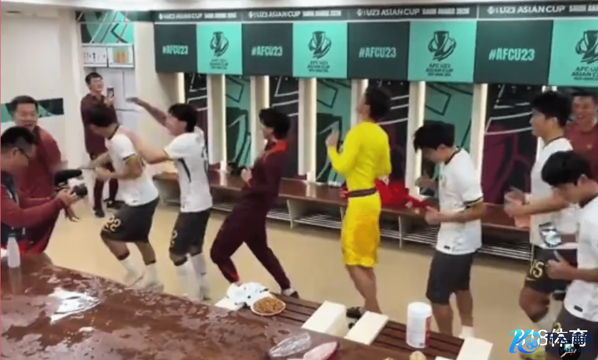 赛后,国足U23举座在更衣室开香槟舞蹈,彭啸的舞姿太概述了。
