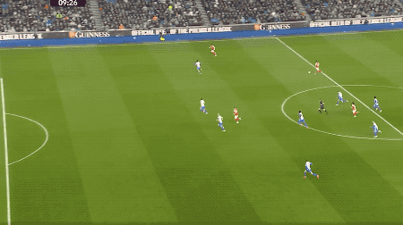 错杂之中,吉布斯-怀特如幽魂般杀出。在小禁区左侧,他背对球门,用出一记洒脱的脚后跟磕射。