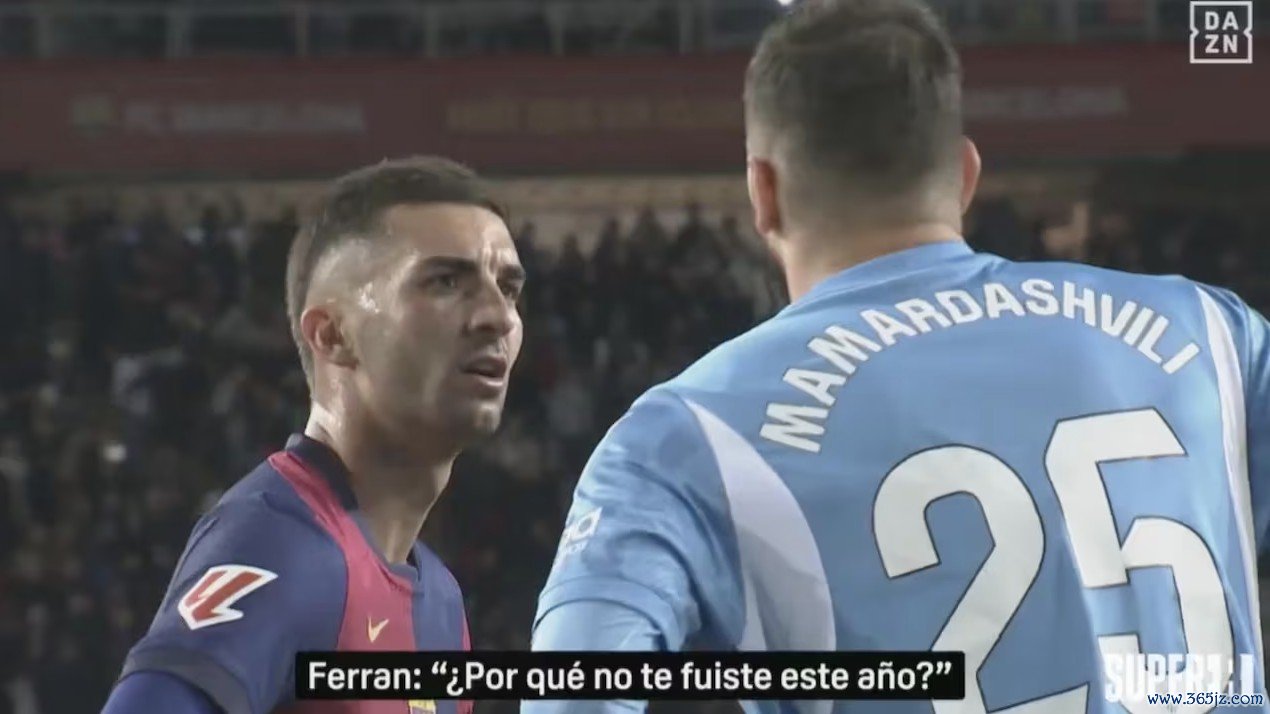 在巴塞罗那7-1打败瓦伦西亚的比赛后,费兰-托雷斯和瓦伦门将马马尔达什维利进行了一番对话。