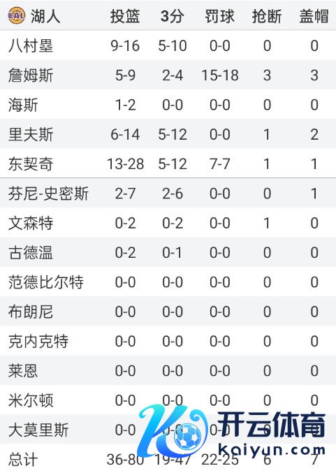 值得一提的是湖东说念主这些罚球一皆来自詹姆斯和东契奇两东说念主,其中詹姆斯18罚15中,东契奇7罚7中。