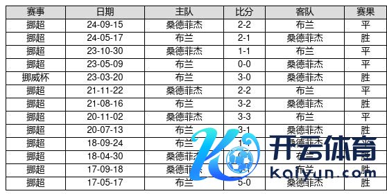布兰 VS 桑德菲杰两队近10年的交战次数为13场,布兰7胜6平0负,赢球概率为53.8%,平局概率为46.2%,输球概率为0.0%。
