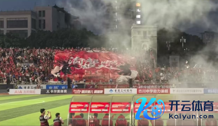 球场内,球迷协会在看台上展示了两副阵容恢宏的巨型TIFO。其中13区看台展示了一幅面积为700普通米的巨型TIFO,骨子包括“渝超雄起”字样,以及安逸碑、来福士、喜来登等重庆地标建筑。