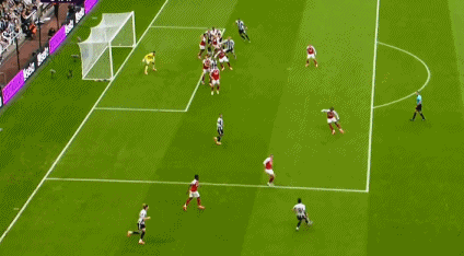 比赛插足补时阶段,激越也随之而来;第96分钟,厄德高开出角球,加布里埃尔抢在波普之前高高跃起冲顶头球演出绝杀好戏,2:1!凭借这粒进球,枪手2:1逆转,排行飞腾到第2;距离榜首的利物浦独一2分。