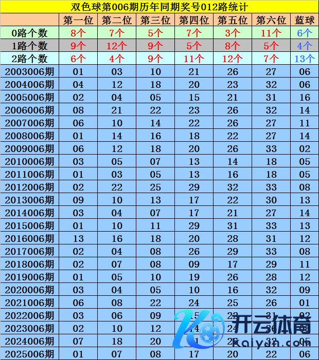 一号球分析:在第006期历史同时开奖中,一号球分别在01-13之间,红球012路比为8:9:6,其中0路红球:03出现4次,06出现3次,09出现1次;1路红球:01出现6次,04、07、13出现1次;2路红球:02出现5次,08出现1次,当今2路号码遗漏2年,本年同时摒除2路红球,参考0路号码03。
